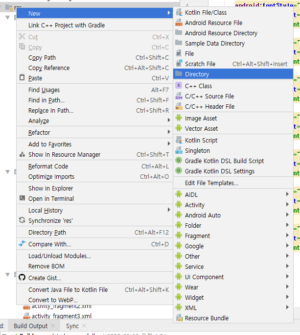 프로젝트 폴더 -> app -> src -> main -> res 폴더 안에 fonts 폴더를 생성합니다.