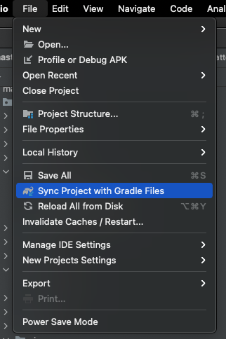 2. File -> Sync Project with Gradle Files 클릭